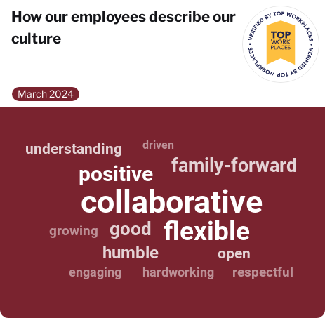 At Rice, our culture is at the center of everything we do. We pride ourselves on being Family Forward, fostering a supportive and inclusive environment where everyone feels at home. Our Relationships Driven approach fosters strong connections with our clients, partners, and team members, ensuring mutual growth and success. We are Passionately Innovative, pushing the boundaries to deliver solutions and continuously improve. Our commitment to being Continuously Accountable means we take responsibility for our actions and results, maintaining the highest standards of integrity. Lastly, we believe in being Remarkably Collaborative, working together seamlessly to achieve extraordinary outcomes.